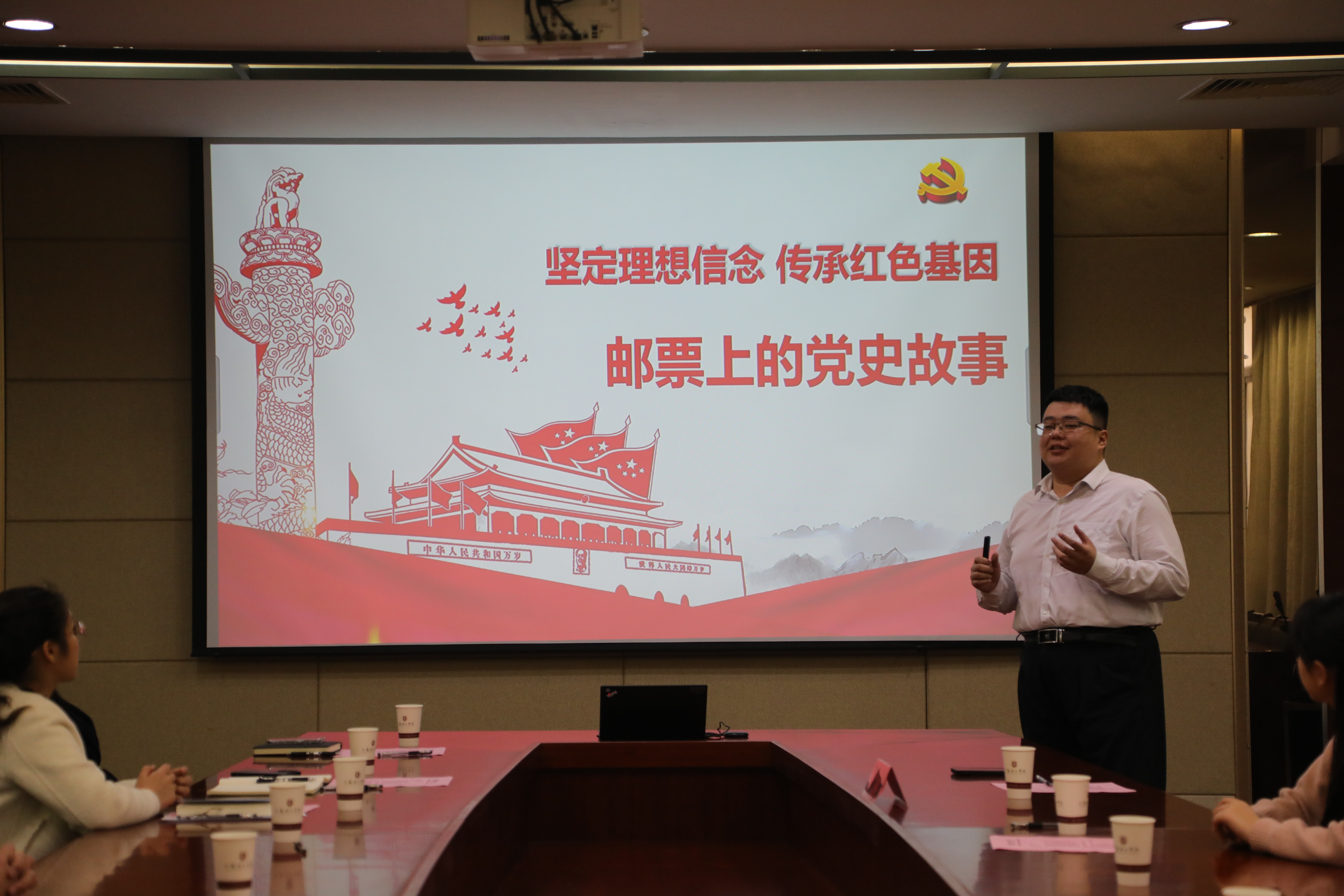 启动仪式后,中国邮政常州分公司成睿作《邮票上的党史故事》红色主题教育讲座,通过对党的一大到党的二十大的纪念邮票来历的讲解,让同学们从中汲取前行力量。(图/蒋相杰;文/学生工作处 李金东、周阳;编辑/黄妤;审核/许晓星)