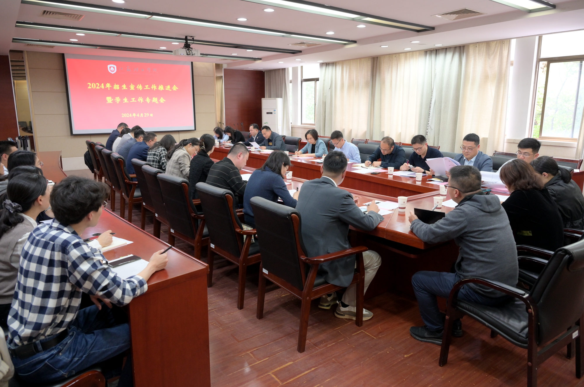 4月29日下午,我校在厚德楼220会议室召开2024年招生宣传工作推进会暨学生工作专题会议。党委副书记、副校长俞亚萍,学生工作处、保卫处、后勤保障处、团委等职能部门领导,各二级学院副书记参加会议。会议由学生工作处处长许晓星主持。