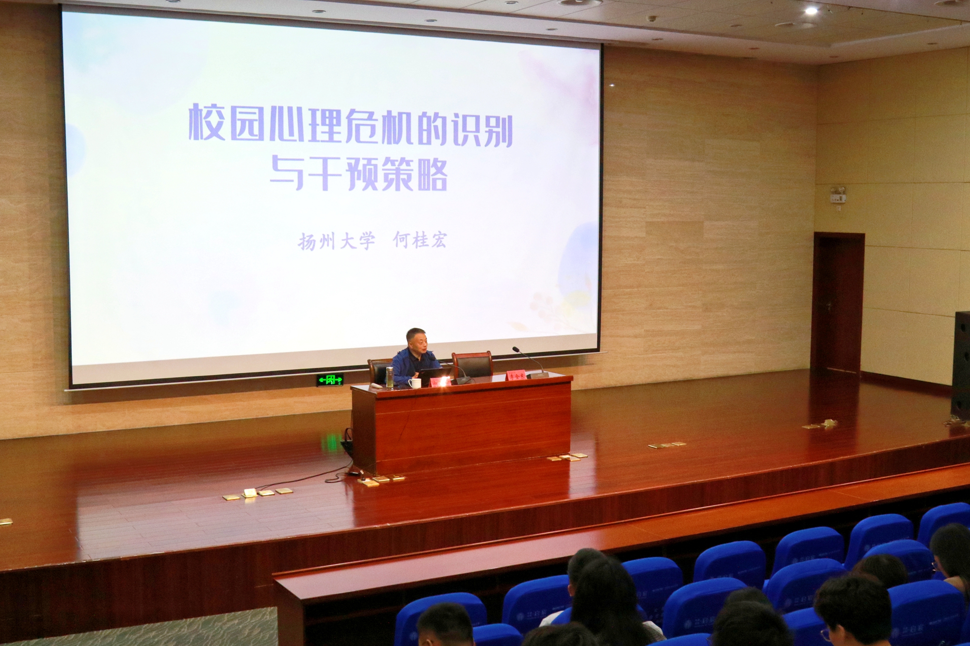 5月31日下午,我校在图书馆北报告厅举行2024年辅导员核心能力提升培训。本次培训特邀扬州大学教科院心理系副教授何桂宏作大学生心理健康教育专题讲座。全体辅导员及学工处老师参加培训,培训会由学生工作处副处长李金东主持。