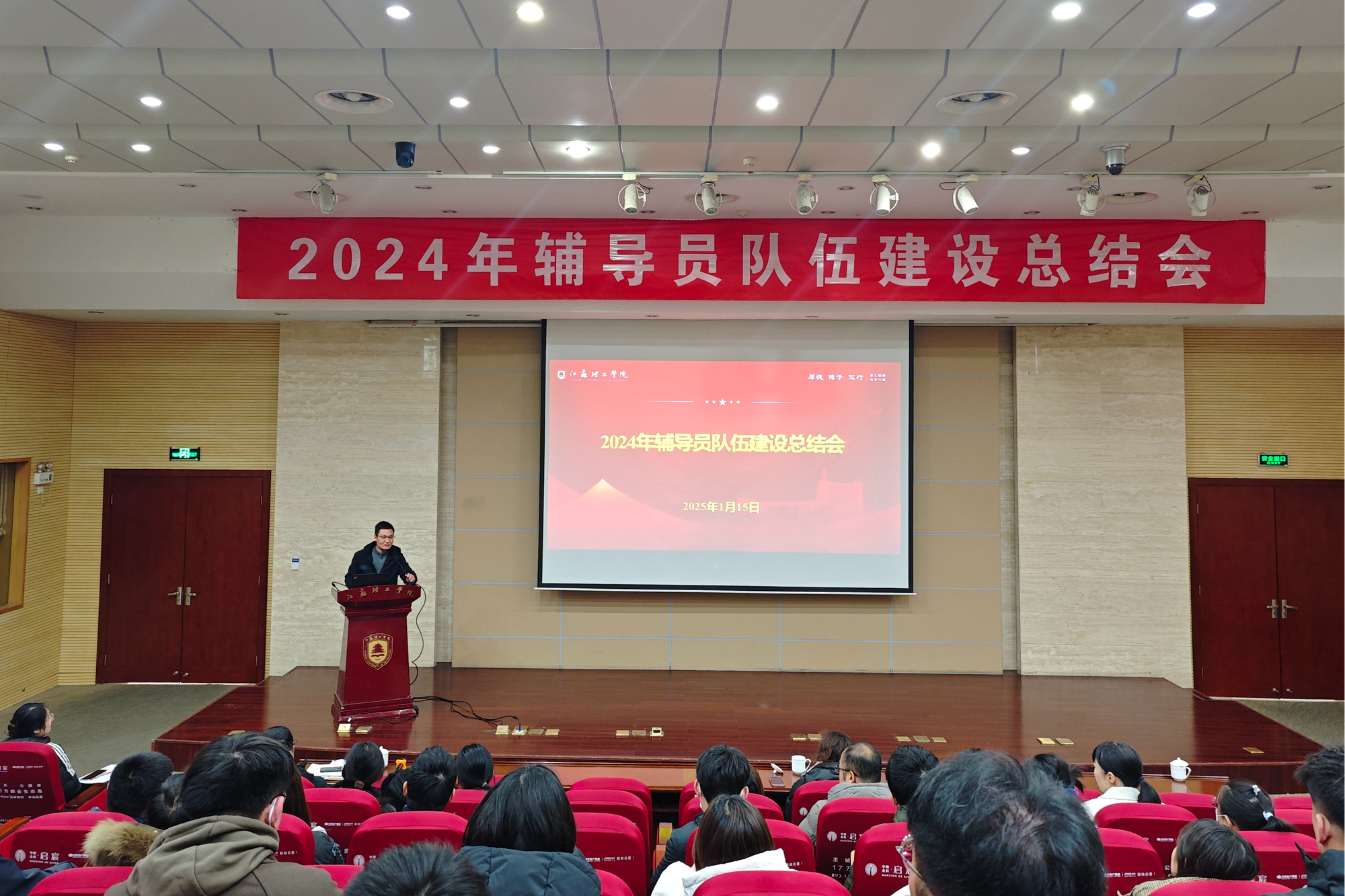 许晓星用三个关键词总结发言。一是感谢,他充分肯定了2024年度学生工作所取得的成绩,对学生工作战线全体同志的辛苦付出表示感谢。二是学习,希望全体辅导员强化理论、精通业务、吃透政策、汲取经验,为学生工作提供有力支撑。三是实干,希望全体辅导员扎根一线,实干为先,以钉钉子精神全方位融入思政教育,助力学生成长成才。(图/蒋相杰;文/李金东 周阳;审核/许晓星;编辑/黄妤)