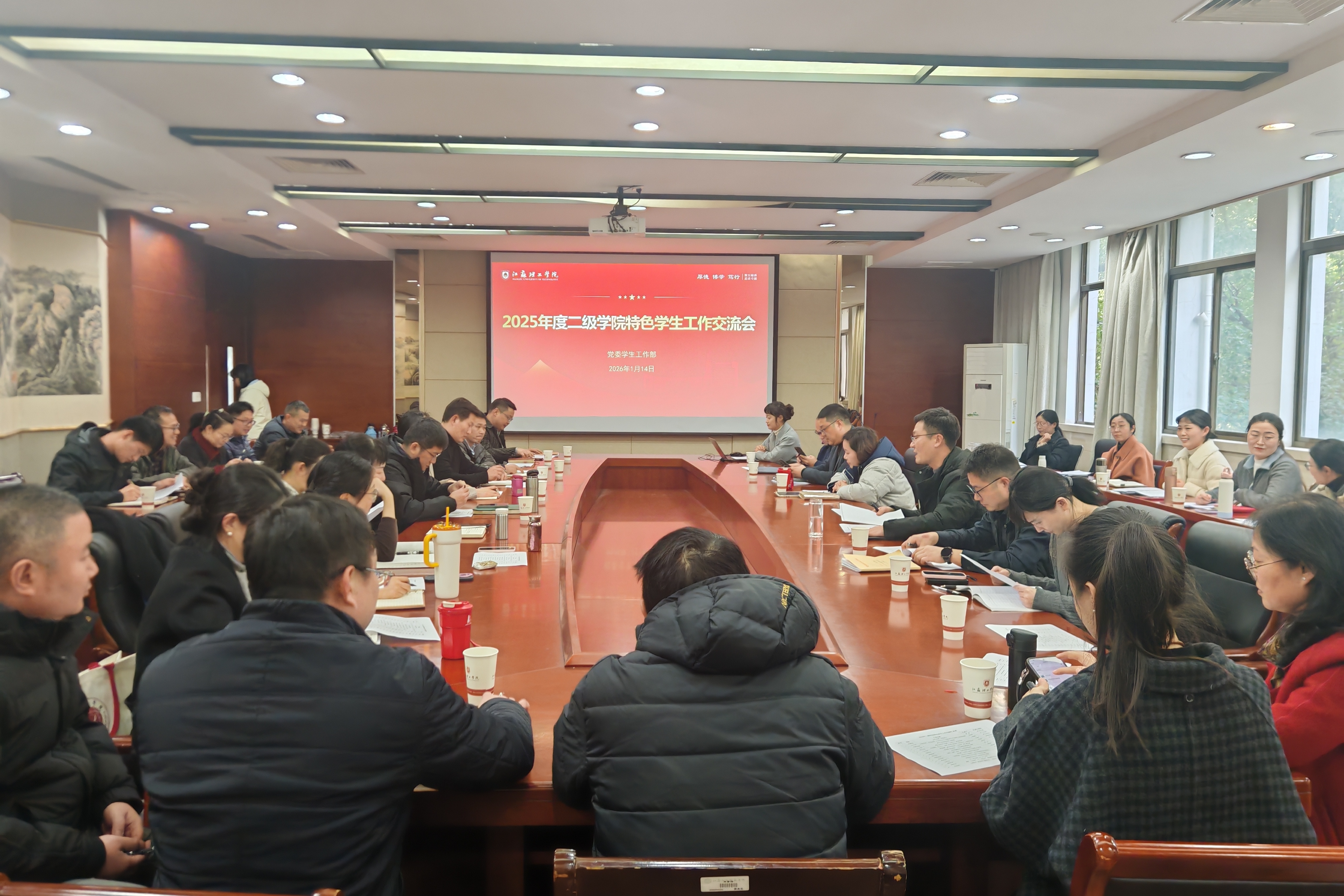为进一步加强学生工作交流,促进经验互鉴与提质增效,1月14日,我校在厚德楼220会议室举行2025年度学院特色学生工作交流会。党委常委、副校长俞亚萍,党委学生工作部、校团委等部门负责人以及各二级学院党委(党总支)副书记、学工办主任参加会议。