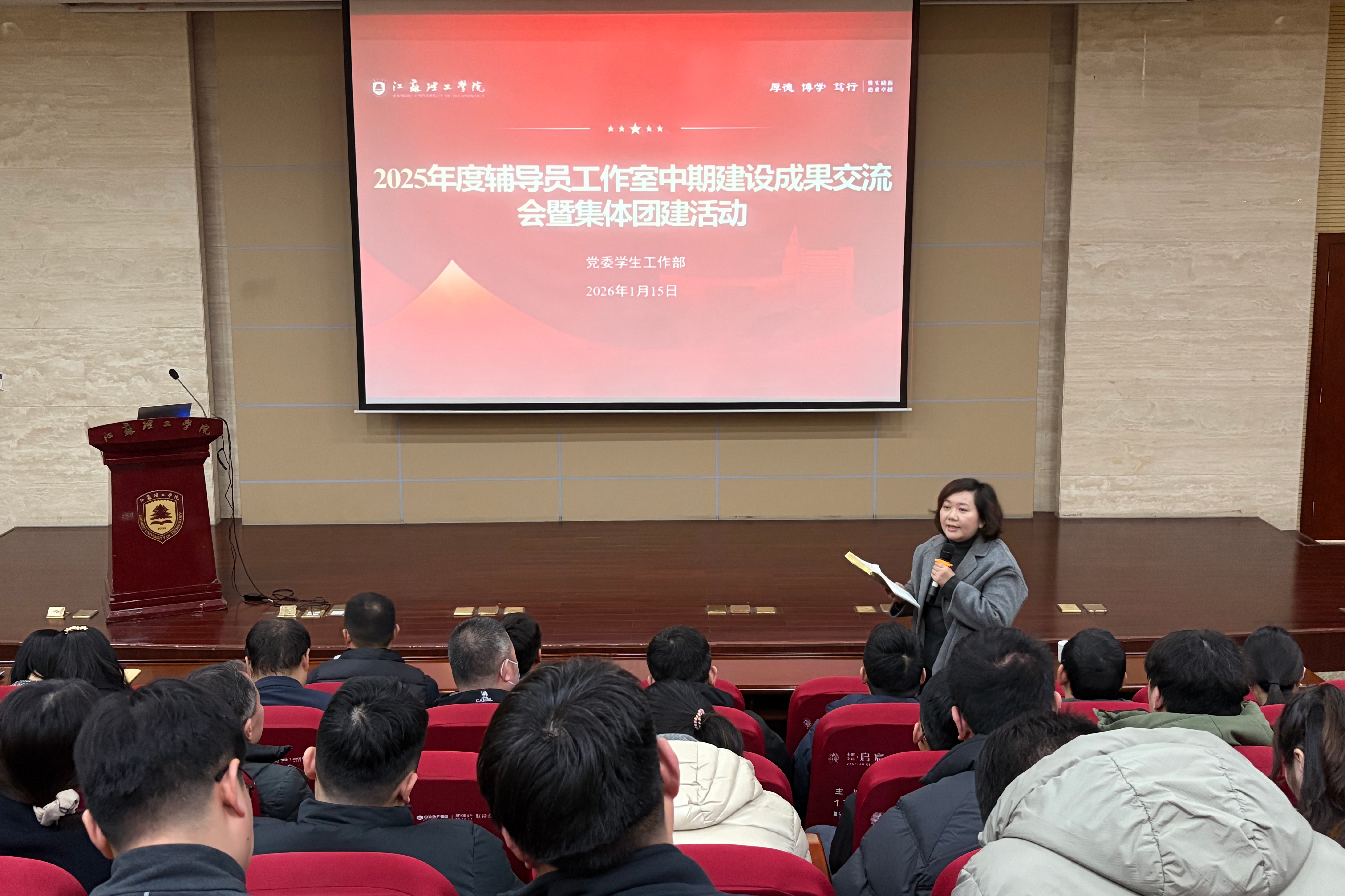 为深入推进辅导员队伍专业化职业化建设,系统总结展示辅导员工作室阶段性建设成效,促进各工作室之间的交流与互鉴,1月15日下午,我校在图书馆南报告厅举行2025年度辅导员工作室中期建设成果交流会暨辅导员集体团建活动。会议由党委学生工作部副部长李金东主持,党委学生工作部部长许晓星、校团委书记陈晓,各二级学院党委(党总支)副书记及全体辅导员参加会议。