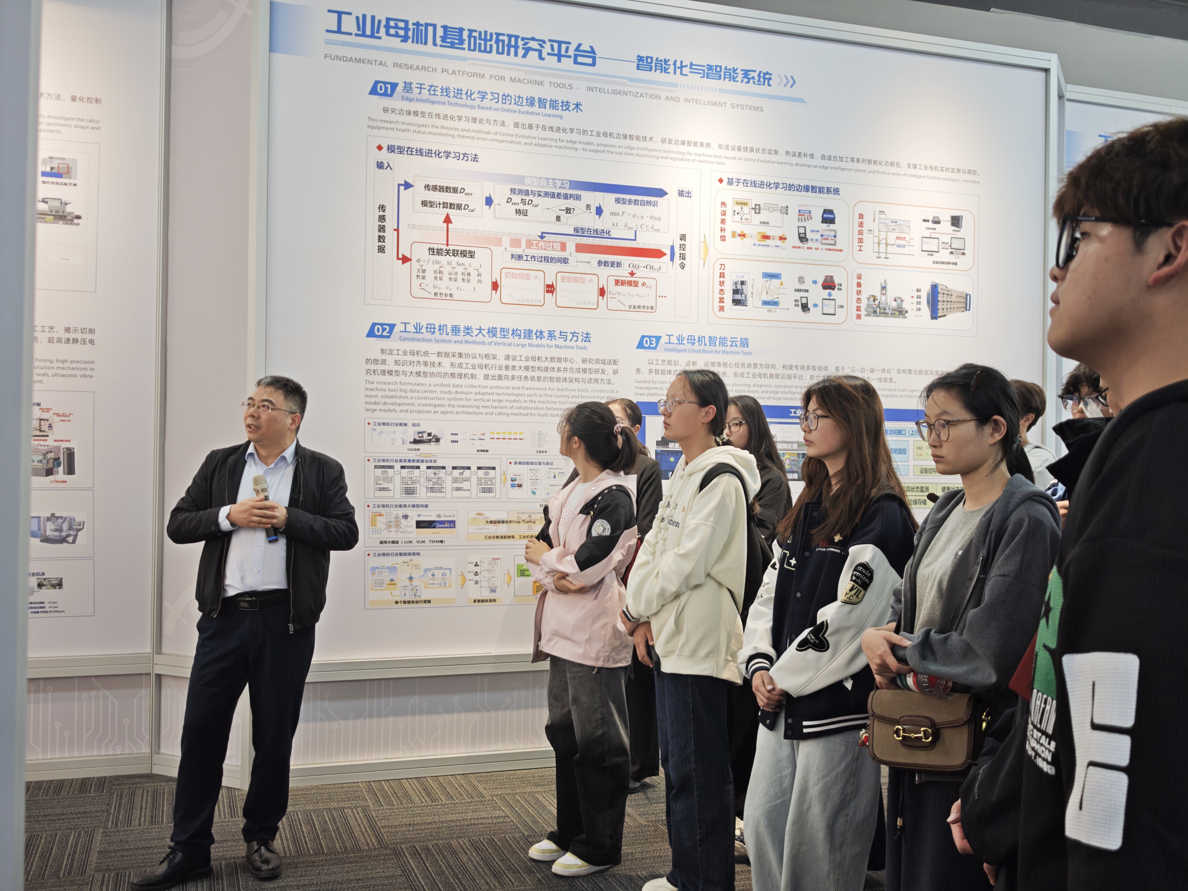 在龙城实验室主任助理邹灵浩博士的引导和讲解下,师生一行依次参观了企业展厅与先进生产车间,实地观摩了工业母机精度保持性测试装置、智能监测系统等一系列核心科研设施。在XbotPark机器人基地(常州)副总经理王豫平的陪同与讲解下,师生详细了解了学院及基地在创新创业人才培养、新工科教育体系建立、科创企业招引、孵化培育加速等方面的做法与成果。